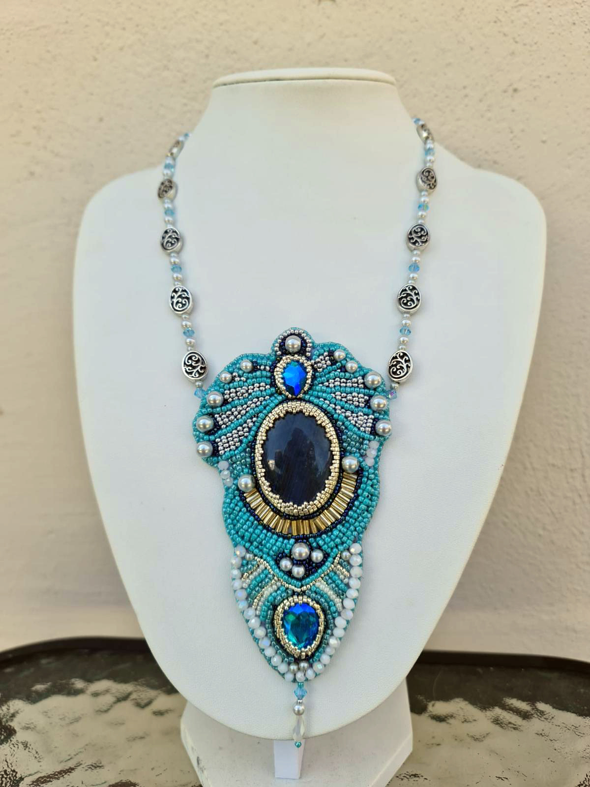 Piatra semipretioasa Labradorit, cristale Svarowsky, perle, margele Miyuki